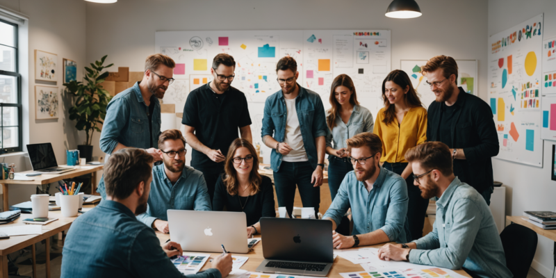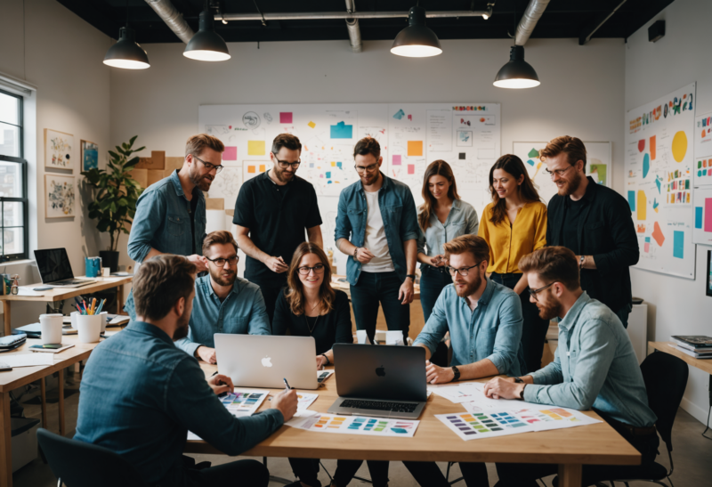 На этом этапе разрабатываются основные идеи и темы, которые должны отражать суть бренда. В процессе могут создаваться черновые наброски и мозговые карты, помогающие структурировать мысли и выбрать направление для дальнейшей работы.